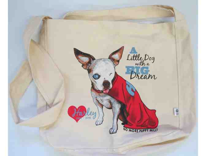 New, Canvas Harley, 'A Little Dog With a Big Dream' Commemorative Market Bag (originally offered by FLOAT). Measures 14" x 16"