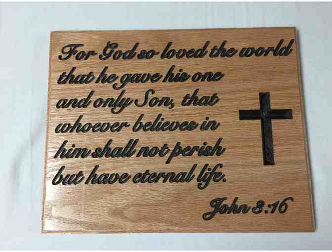 Handcrafted plaque engraved with bible verse. 14" x 11".