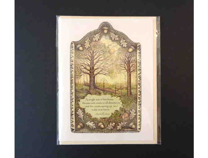 "A single act of kindness throws out roots in all direction. and the roots spring up and make new trees" --Amelia Earhart. Suitable for framing giclee art card by Rachel Badeau of Moosup Valley Designs. Measures 4" x 5.5".
