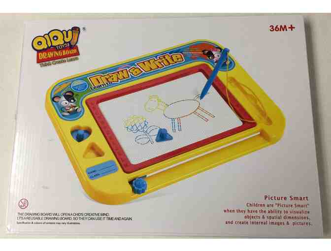 Perfect gift - magnetic drawing board by Kidolino. Why choose Kidolino magnetic drawing board? 1. Education, learning experience. 2. Fun and interactive for the entire family. 3. Another way for your child to expand their imagination. 4. Drawing is fun with no mess. 5. The deluxe mini size magic drawing toy has a large screen for big size drawings - kid's favorite magnetic toy. 6. Create designs using the included 2 stampers. 7. Children love to draw and create. 8. Toddler drawing board makes it easy and fun with no mess. 9. Set includes portable kids magnetic drawing board, 2 stampers and drawing pen.