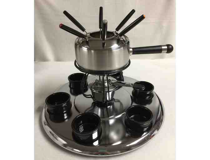 Casamoda Rotating Lazy Susan Stainless Steal Fondue Set. Includes 6 color coded forks.