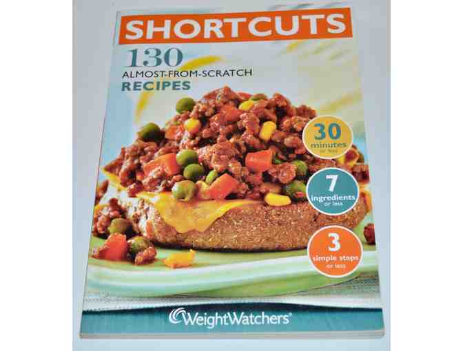Softcover edition of "SHORTCUTS" from WeightWatchers. Has 130 almost-from-scratch recipes that take 30 minutes or less; have 7 or less ingredients; done in 3 or less simple steps. Preowned in good condition. Measures 8.75" L x 6.5" W.