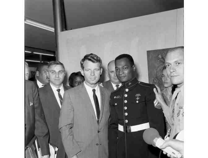 Robert Kennedy with a marine at the Ambassador Hotel during the campaign.