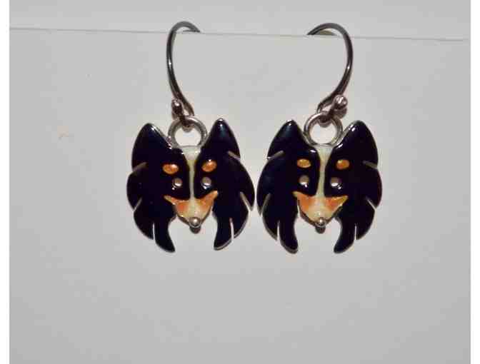 Lovely pair of Tri-color Papillon earrings. Has enamel on Sterling silver. Ears are sculptured; eyes are open hole; and nose is silver dot. Beautifully done in enamel to look almost real! Measures approximately 5/8" x 5/8" with wire backings. Comes in gift box.
