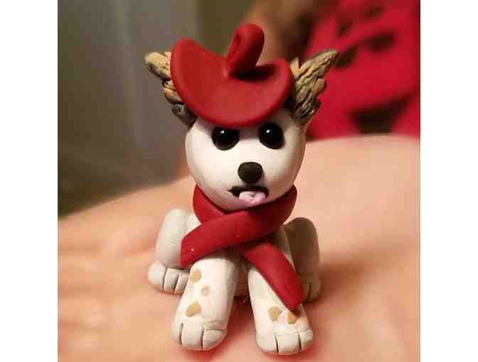 Adorable polymer "Art by Teddy" measures approximately 1 3/4" tall featuring Teddy in his artist beret and scarf. Custom made by artists, Janie Janich and Dena Handel of Sparky's Wonderland. What better way to show your love for Teddy and his paw print artwork than this precious figurine. Sure to attract attention no matter where it's displayed leaving plenty of room to tell admirers about Harley, Teddy and Harley's Dream!