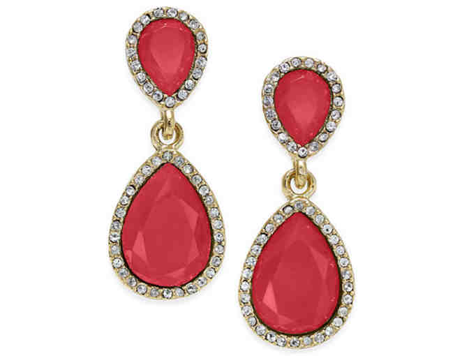 Add a pop of fabulous color with these inverted deep rose teardrop drop earrings created by INC International Concepts. Has inverted smaller teardrop above a larger teardrop surrounded with clear crystals in gold-tone. Approximate drop: 1-1/2”. Comes in gift box.