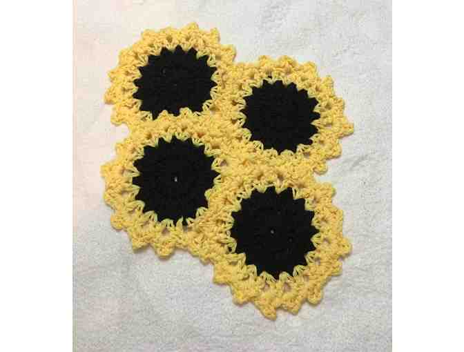 Inspired by Harley's Sunflowers, this set of 4 handcrafted crocheted coasters will spark conversations about Harley and Harley's Dream. 6" round, 100% cotton yarn. Machine washable.