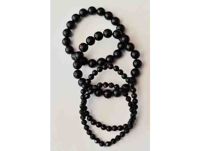 Hand-Crafted Set of 4 Black Bead Stretch Bracelets -- New