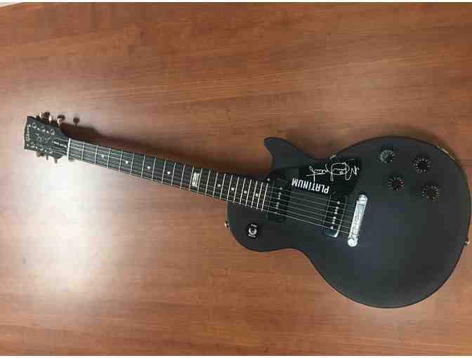 2013 Gibson Melody Maker autographed by the CMA Female Vocalist of the Year in 2017, Miranda Lambert. This guitar celebrates the 120th anniversary of Gibson guitars. You will see the 120th anniversary emblem on the twelfth fret. It has P-90 pickups and a black matte finish. This was a promotional guitar from the "Miranda Lambert Platinum Tour". There was a limited number of guitars made, and they were only offered to contest winners for promotional purposes. Miranda's signature is embossed on the pick guard, as well as "Platinum" for the name of the album. This was Miranda Lambert's most successful tour to date.
