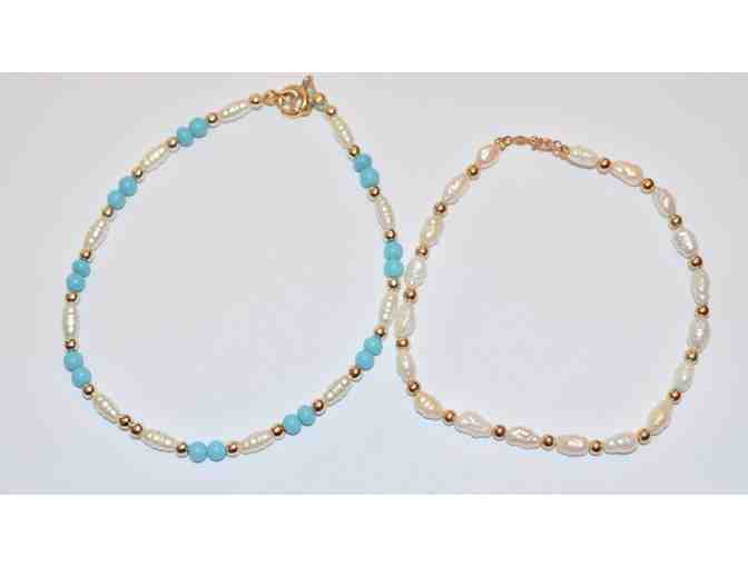 Hand-Crafted Set of 2 Turquoise and Pearl Bead Bracelets -- New