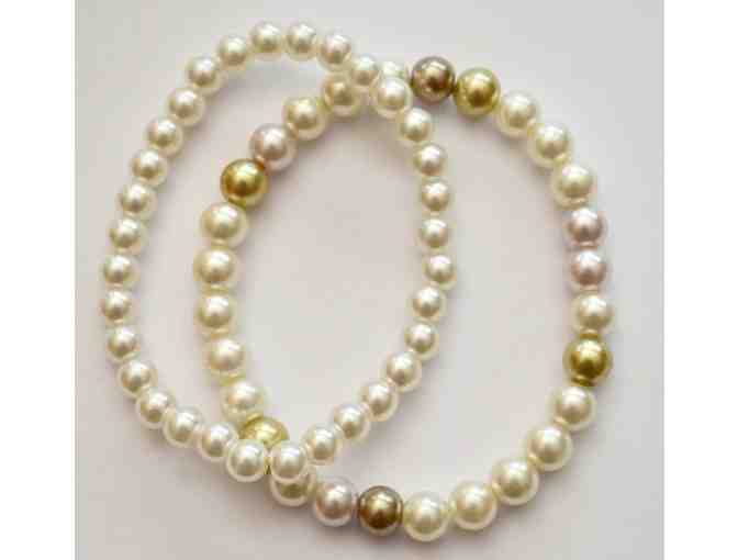 Hand-Crafted Set of 2 Pearl Bead Stretch Bracelets -- New