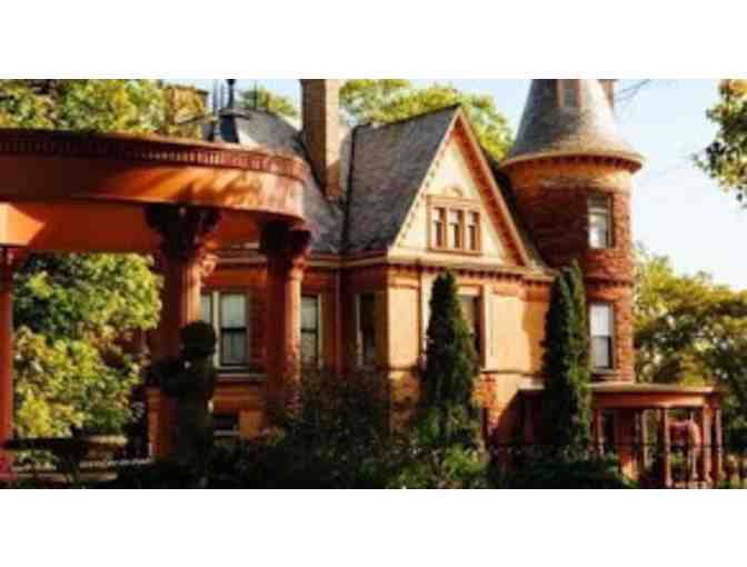 Called the Jewel of Kalamazoo, and ranked the top historic inns in Michigan by AAA, the grandeur of this 11,000-square foot Queen-Ann style mansion, sitting on 3 acres, offers an intriguing blend of architectural, artistic, antique as well as modern amenities, including wireless access for business travelers. Heated marble floors, crystal chandeliers, gorgeous leaded and stained glass windows, fiber optic accents, a sauna, steam room and rooftop hot tub make the Castle a haven in the city and a romantic dream come true. This package comes with 3 $50 certificates--one for your room, one for the spa, and one for the restaurant, a $150 value!