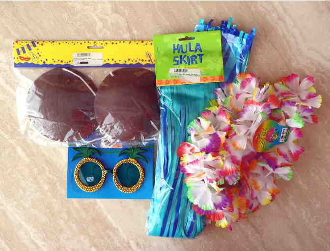 Don't know what to wear for Halloween next year? Going to a Luau? Here's a Hula Skirt, Coconut Bra, Colorful Lei, & Wild Palm Tree Sunglasses. Fun!