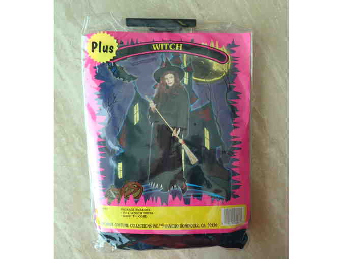 Be ready for next year's Halloween with this witch costume. It's a full-length plus size dress with a waist tie cord. From the California Costume Collection.