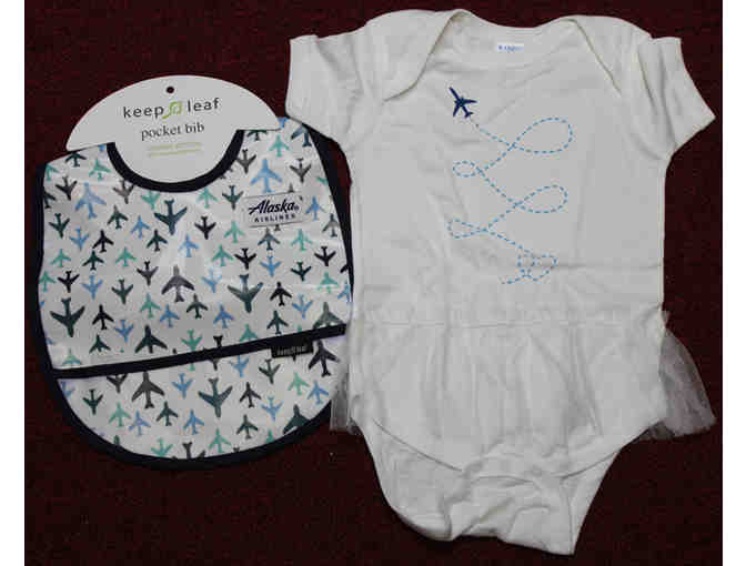 Alaska Airlines onsie tutu in white with tulle skirt. 'Alaska Airlines' on the back.