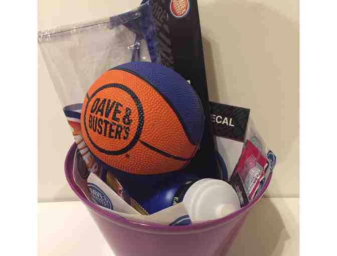 Have fun at Dave & Buster's! This basket includes 2 gift cards, water bottle, ball, bag, decals, keychains and candy. What more could you ask for?