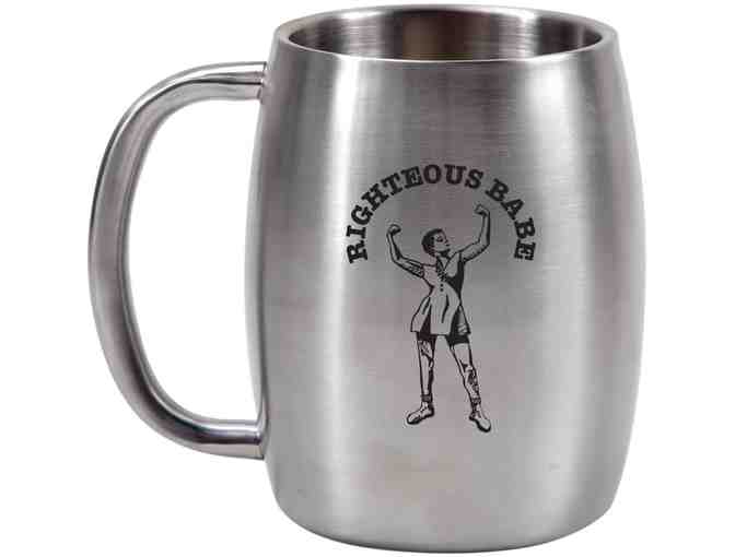 Label founder Ani DiFranco once called Righteous Babe Records “a people-friendly, sub-corporate, woman-informed, queer-happy small business that puts music before rock stardom and ideology before profit,” and it’s hard to imagine a more accurate mission statement than that one. You are bidding on a stainless steel mug with Righteous Babe written on it to enjoy your favorite beverages.