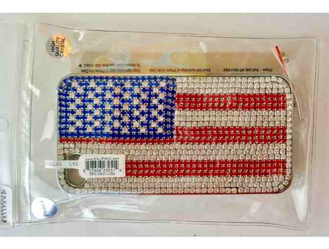 New iPhone 4 Cover with USA Flag Design Crystal/Light Siam/Sapphire Crystals. High quality crystals make this Kalifano product beautiful.
