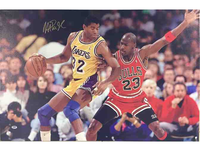A classic match up captured in color and signed by Magic Johnson.