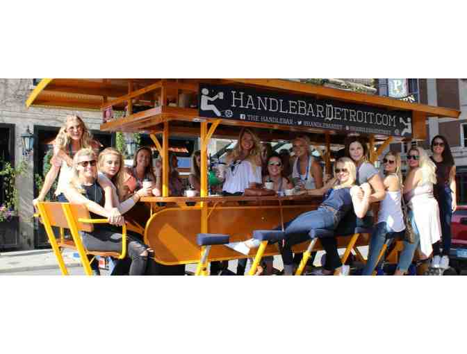 You get a 2 hour tour for up to 16 people on the people powered "Handlebar" in Downtown Detroit (Sunday through Thursday). Pedal around Detroit and have a drink (alcolhol is not included). 18 and older only.