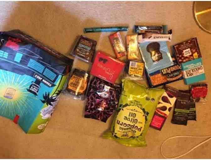 A basket full of chocolate and other goodies from Trader Joe's on Telegraph.