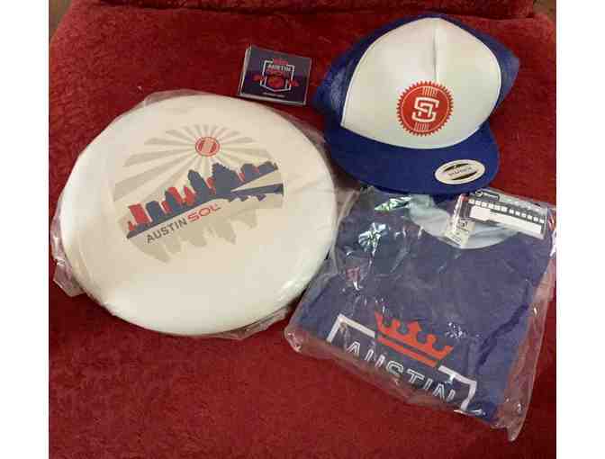 Austin Sol Ultimate fans will love this assortment which includes a Frisbee, baseball cap and a Tshirt, Size M.