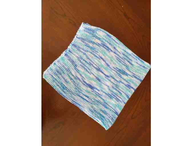 Hand knit baby afghan in blue