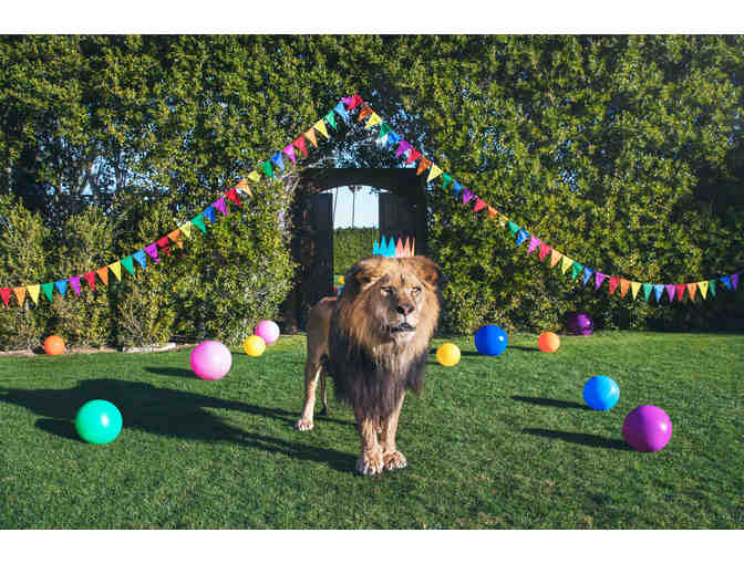 'The playful grounds of Gray's favorite hotel, the Parker Palm Springs, are a modern day fantasy with hammocks under palm trees, croquet and bocce fields, vintage umbrellas, and lemondae stands by pools. Gray's imagination ran wild, he began to envision an oasis of his favorite exotic animals living at the hotel: where you are greeted by a bellman monkey, can sip lemondae with Giraffes, play chess with Penguins and take a dip with Flamingos'