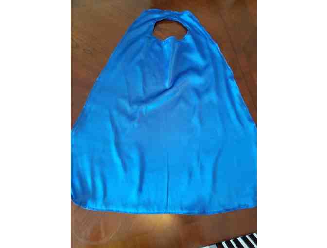 Let your child's imagination run wild with this cute, handmade superhero cape in blue.