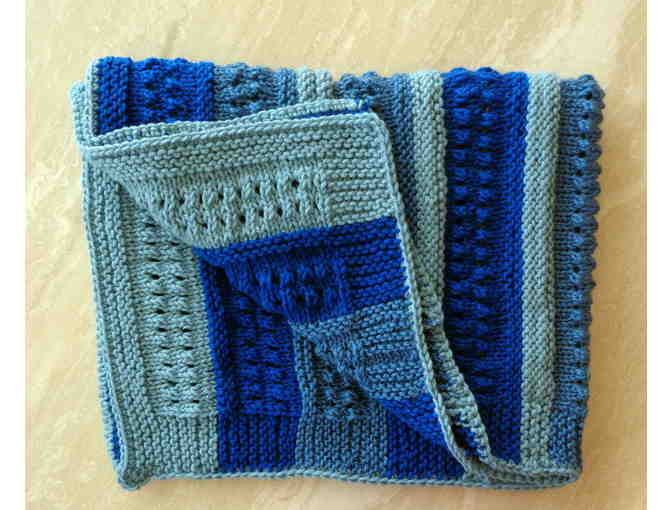 Hand-Knit Shades of Blue Lap Robe -- New
