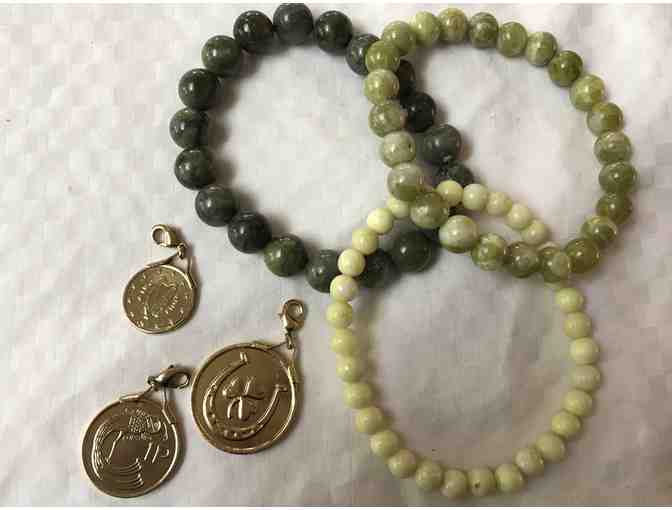 New - 3 Irish Connemara Marble Bracelets + 3 Goldtone Charms