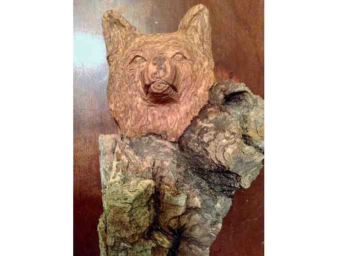 Hand carved by Nancy Curry, this cottonwood bark carving of a dog measures 5.5 inches tall by 3.5 inches wide. Skillfully done piece that will be a wonderful addition to any collection. Great gift for any dog lover!