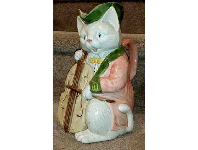 Hey Diddle Diddle Cat with Fiddle Pitcher by Fitz and Floyd 8 1/2", 48oz.,dated 1986.