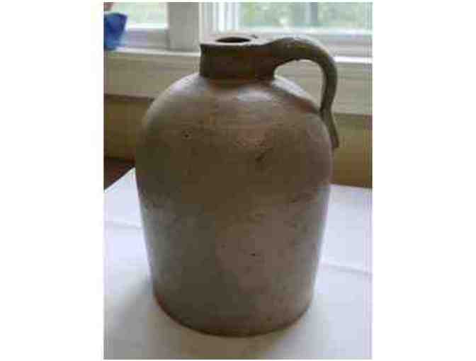 Nicely made ceramic jug. Inscription on the bottom reads "Found in Rockland - our Dell family dump. by EBJ in1960's".