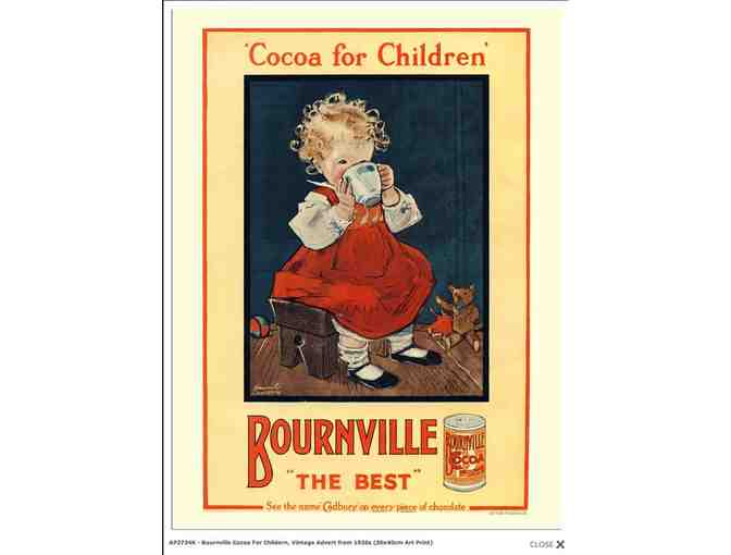 Says, "Cocoa for Children" at top and bottom says, "Bournville "The Best" and "See the name Cadbury on every piece of chocolate"