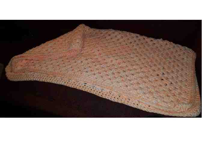 Handmade soft and thick afgan measures 35" square. Orange and white yarn create the creamsicle color.
