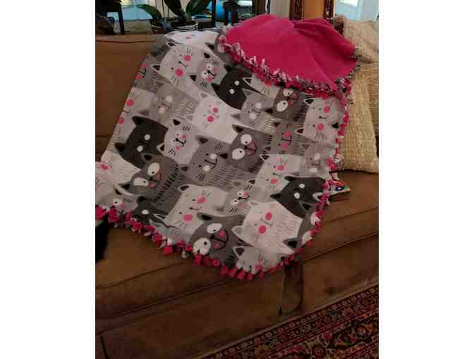 Heavy Fleece Cat Throw- Gray, Black and Pink front with Pink Back