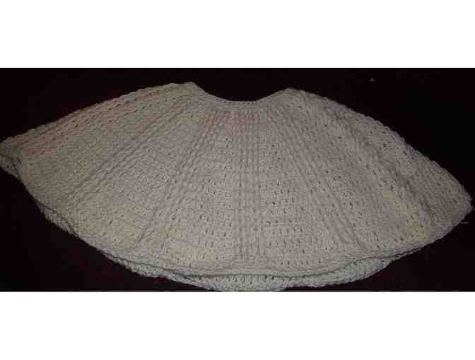 Crocheted poncho in fisherman's (off-white) yarn, measures 10" high. This poncho is slightly lighter in color than poncho #1.