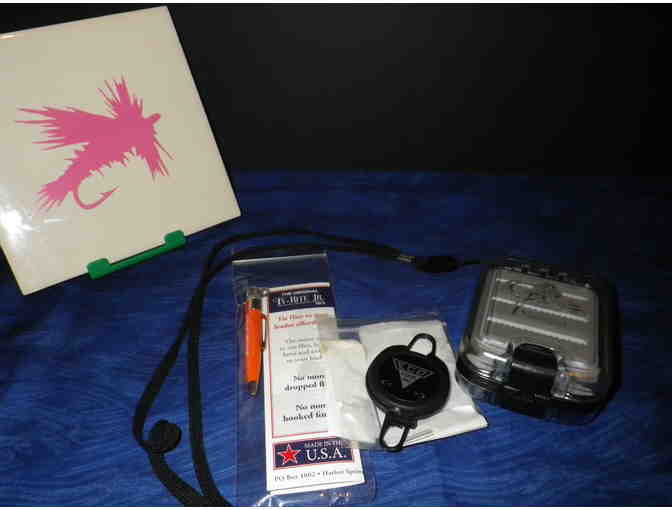 A 2 sided, clear cover fly box on lanyard; engraved with the CfR Michigan logo on one side!