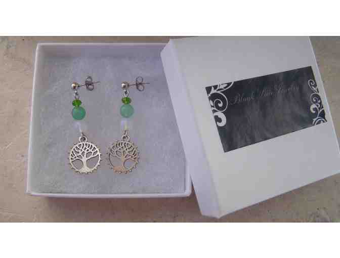 Tree pendants with green aventurine, opalite and glass beeds. Stainless steel posts.