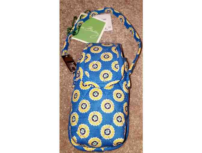 New with tags cell phone case by Vera Bradley. Riviera blue (retired), 5" x 2.25" x 1.5". 10" carabiner strap.