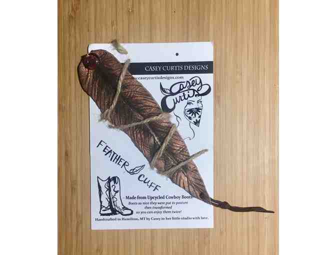Leather Cuff bracelet made by Casey Curtis Designs, Hamilton, MT. Created from "upcycled" cowboy boots. Measures approximately 7" for wrist measurement.