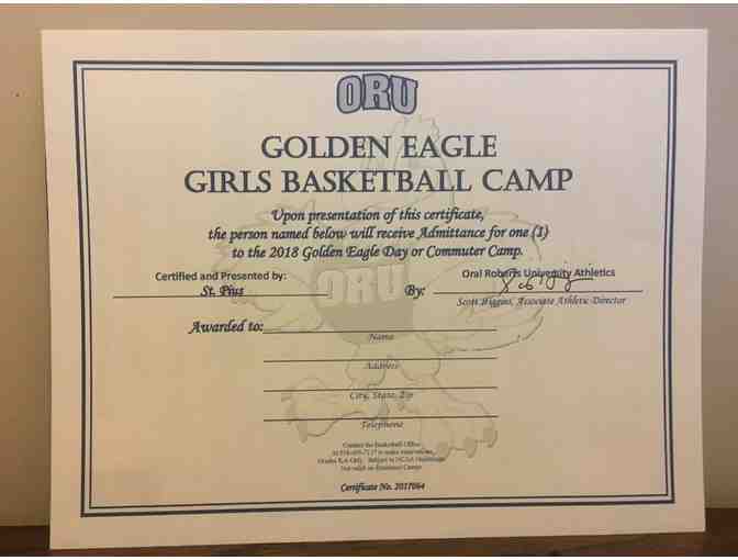 Certificate for admittance for one girl (grades K-8th) to the 2018 Golden Eagle Day or Commuter Camp.