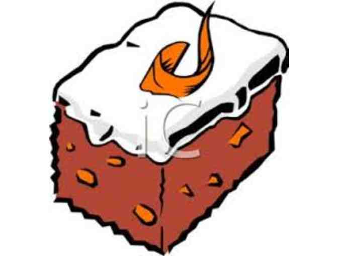 Made in a 9" x 3" round pan this delicious carrot cake always gets rave reviews. It features real cream cheese icing and uses at least 6 carrots. No nuts or raisins.