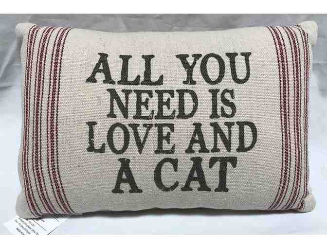 New with tag. Decorative pillow saying "All you need is love and a cat"