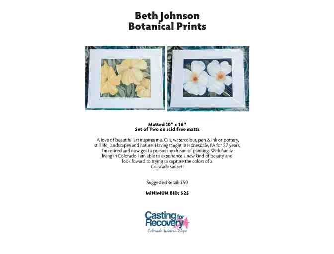 Set of Two (2) Botanical Prints on acid free matts by Beth Johnson. With mats - overall size is 20" x 16"