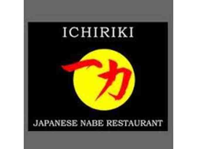 Up for bid is a $25 Gift Card for Ichiriki Restaurant. This gift card can be redeemed at one of four locations: Ala Moana, Aiea, Kaneohe or Kaimuki.