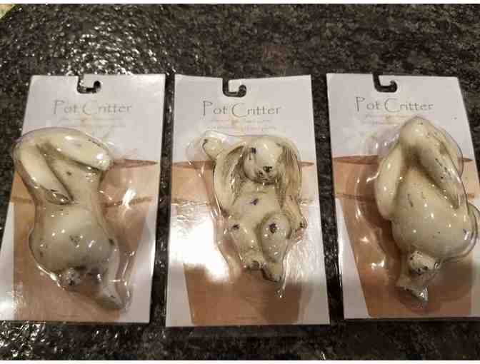 Cute, new in box bunnies to hang or sit over the edge of your potted plants or on the rim of just about anything. Approx 4"