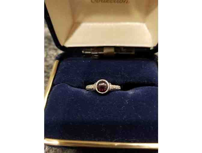 One ring has a garnet (or similar) stone- size 10 (this is not marked 925)