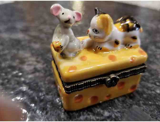 Very cute ceramic trinket boxes of cats in a variety of situations. Each one is just adorable and could be used as individual gifts or as a collection. New